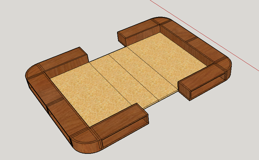 I started with the basics of the design, a table with a 4’x4’ inset that can expand into a 6’x4’. I’m looking for a minimalist approach where I can, while still including all the features I want. The 4x4 inset allows a full game of X-wing inside the table, and the 6x4 for warhammer or a large group of D&D. Unlike last time, I’m ditching the mode where it collapses to a 4’x2’ surface. It’s not necessary. This is replacing a coffee table, so there’s no need to be any smaller than what it’s replacing.